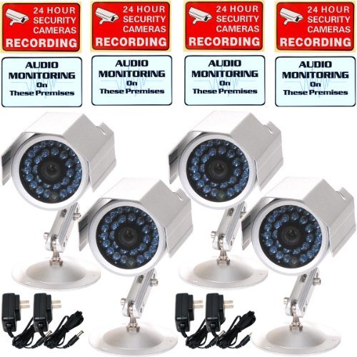 Check Out VideoSecu 4 Day Night Audio Microphone Security Cameras Outdoor Weatherproof 30 IR LEDs 3.6mm Lens CCTV Home Surveillance DVR System Cameras with Power Supplies Security Warning Signs IR33A4 WD7